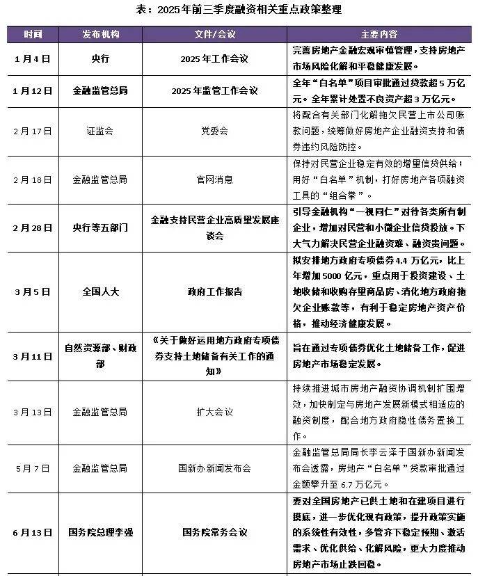 2025年,房地产政策仍保持宽松基调,在3月的两会政府工作报告中,指出实施适度宽松的货币政策,并提到“适时降准降息”,以及“实施更加积极的财政政策”。从全年的房地产融资政策来看,一方面通过房企白名单政策,打通保交付和保障房的贷款资金循环,同时在存量土地方面鼓励通过收储盘活闲置土地,而在商业地产领域则推动公募REITs来释放更多沉淀资金。
