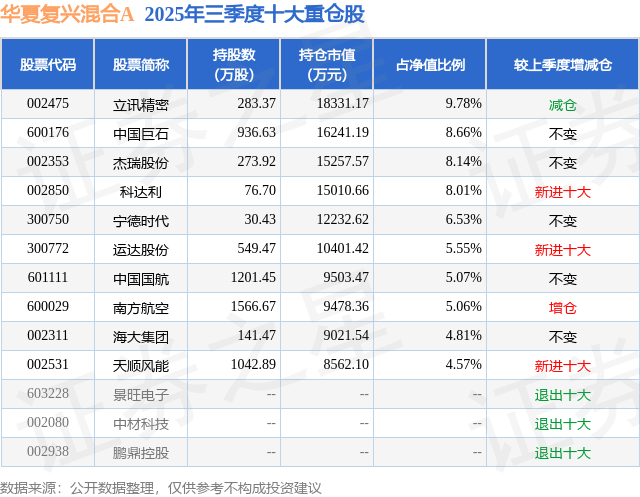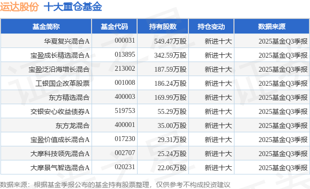 根据2025基金Q3季报公募基金重仓股数据,重仓该股的公募基金共20家,其中持有数量最多的公募基金为华夏基金的华夏复兴混合A。华夏复兴混合A目前规模为18.64亿元,最新净值2.693(1月12日),较上一交易日下跌0.19%,近一年上涨46.2%。该公募基金现任基金经理为郑煜 黄皓。郑煜在任的基金产品包括:华夏新锦升混合A,管理时间为2024年12月19日至今,期间收益率为36.9%。黄皓在任的基金产品包括:华夏新锦升混合A,管理时间为2025年7月1日至今,期间收益率为30.29%。