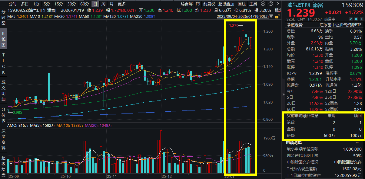 2026-01-19必威官方网站,Betway必威,必威APP下载1月19日,A股市场震荡上行,沪指反弹!截至14:44,油气ETF汇添富(159309)涨1.72%,盘中强势吸金超600万元!