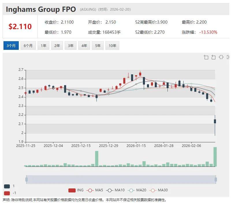 【异动股】禽业巨头Inghams 集团 (ASX:ING) 业绩未达预期并下调盈利指引 股价暴跌逾13%