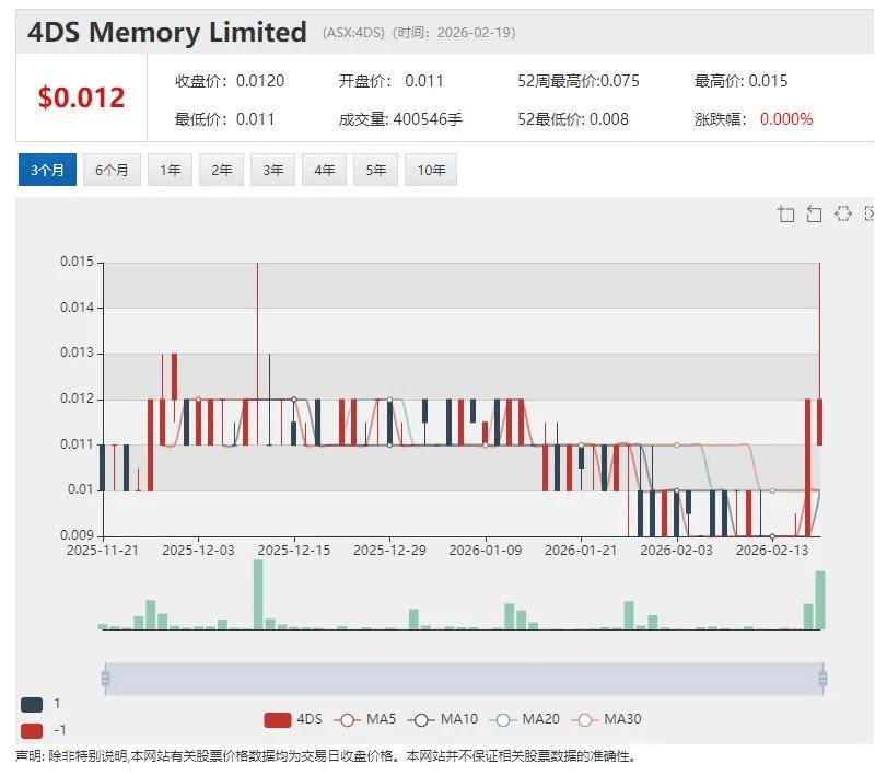 值得注意的是,上周三当日公司并未发布运营动态更新。4DS Memory最近一次公告是在上月28日发布的截至2025年12月31日季度活动报告。