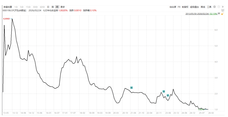 公开数据显示,进入2026年,余额宝7日年化收益率数次逼近“0字头”,但最终都守住了“1字头”大关。但在未来,余额宝进入“0字头”收益,或许只是时间问题。
