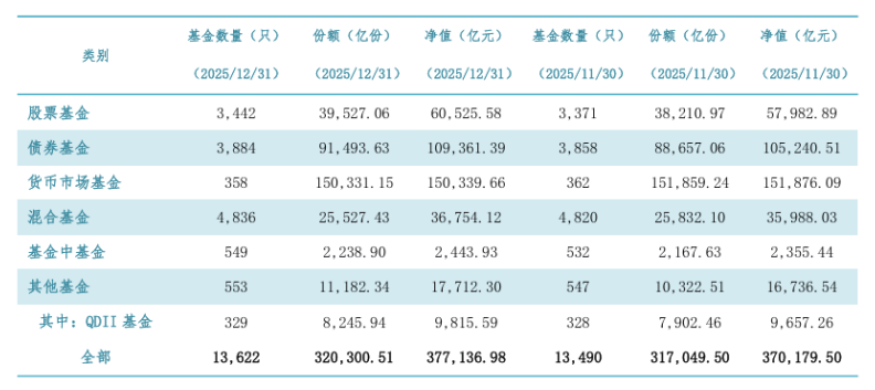不过,从公开数据来看,被大量投资者“忽略”的货币基金,实际上是公募基金市场的主力军。中国证券投资基金业协会公布的数据显示,截至2025年12月末,全市场公募基金规模达37.71万亿元,其中15.03万亿元都是货币基金,占比接近40%。