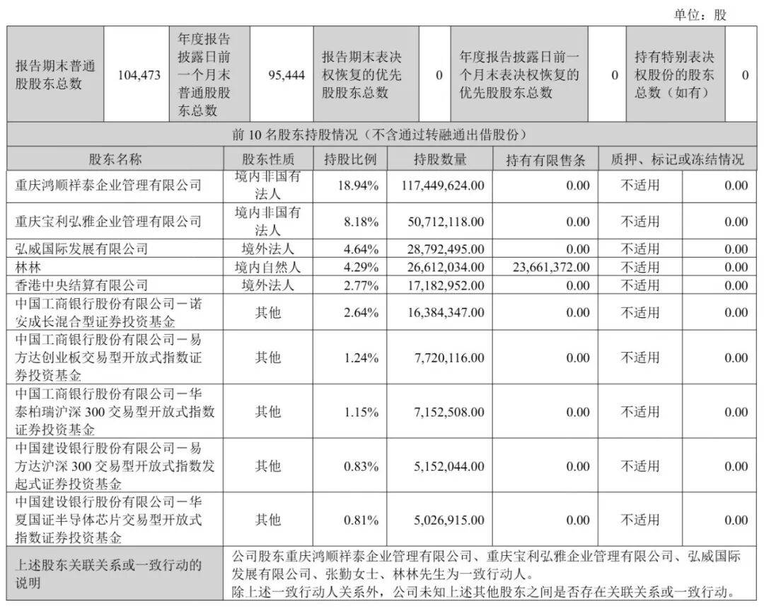 截至2025年12月31日,张世龙旗下重庆鸿顺祥泰企业管理有限公司持股为18.94%,张勤女士重庆宝利弘雅企业管理有限公司持股为8.18%,弘威国际发展有限公司持股为4.64%,林林持股为4.29%;