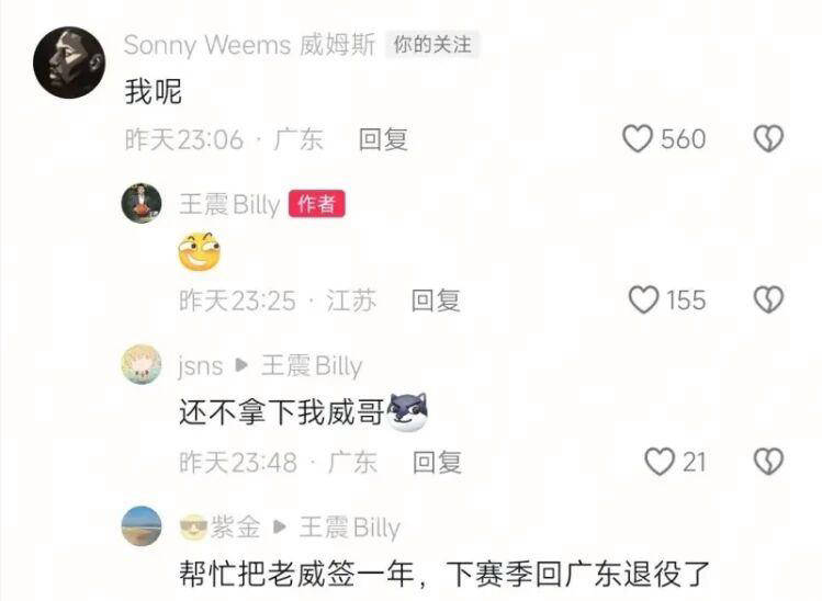 与此同时,同曦男篮正式签约了前广东男篮球员黄荣奇,球队总经理王震在社交媒体上分享了这一消息。在视频下方,广东男篮的功勋外援威姆斯也发出了询问,向王震问道:“我呢?”这一提问迅速引发了球迷的广泛讨论,许多人纷纷呼吁王震重新签下威姆斯。尽管威姆斯已经39岁,且因年龄问题状态有所下滑,但他依然保持着相当不错的竞技水平。上赛季他在深圳男篮效力期间,作为第三外援场均贡献13.2分、4.9个篮板和5次助攻,投篮命中率为50.6%。不过,尽管如此,威姆斯想在CBA联赛中找到新的位置已经非常困难,或许他将在新赛季彻底告别CBA赛场。
